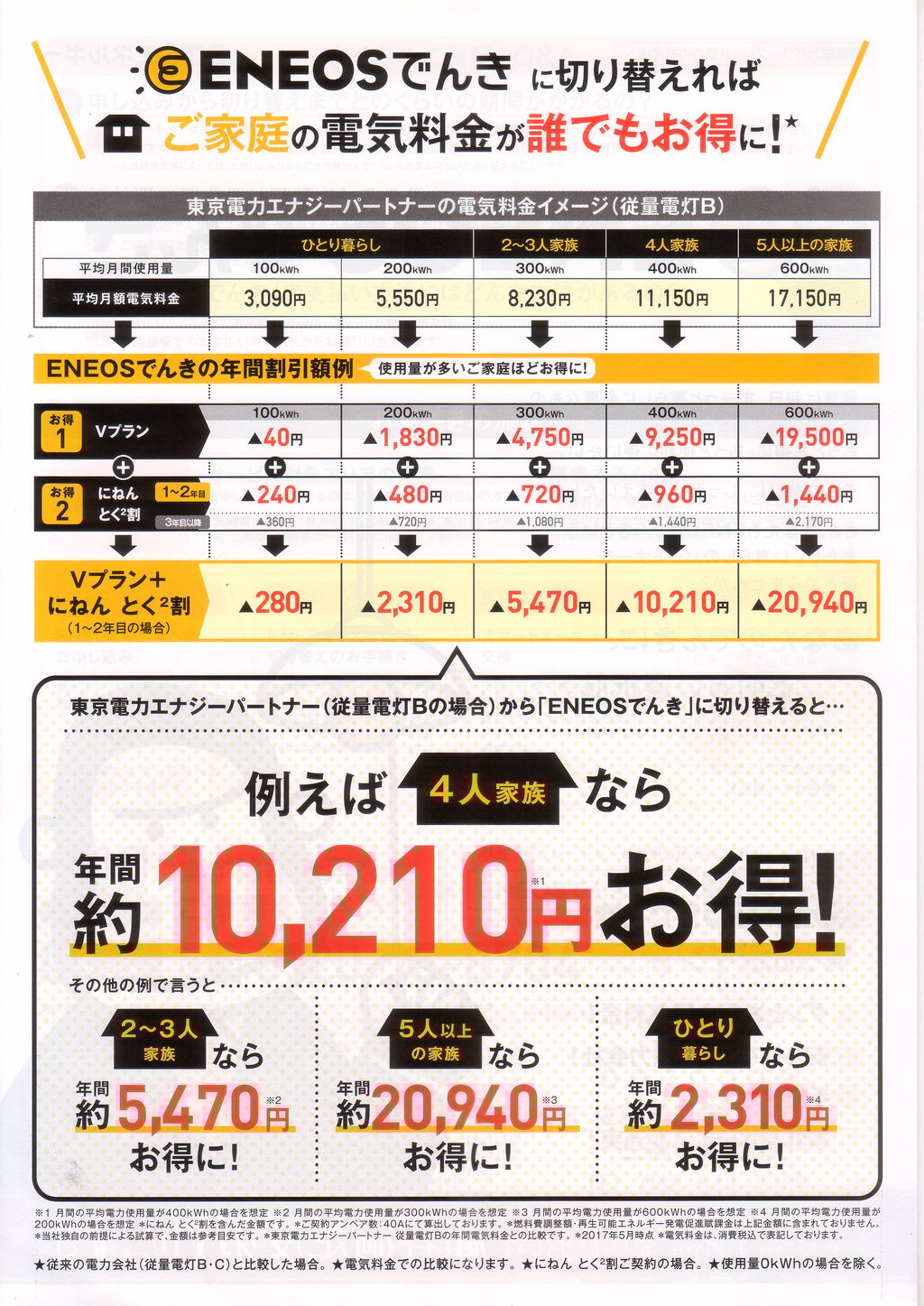 2017/07/18 ENEOSでんきお得なキャンペーンのご案内 ご家庭の電気代、気になりませんか? 「ENEOSでんき」なら切り替えるだけで、誰でも電気代がおトクに! 2017年12月15日までの間に、佐藤興産を通してENEOSでんきをお申し込みいただいた方に、お礼として500円分クオカードと粗品を差し上げております。 今は電力会社が自由に選べる時代です。 このチャンスにENEOSでんきへの切り替えをご検討してみませんか? tagPlaceholderカテゴリ: お知らせ