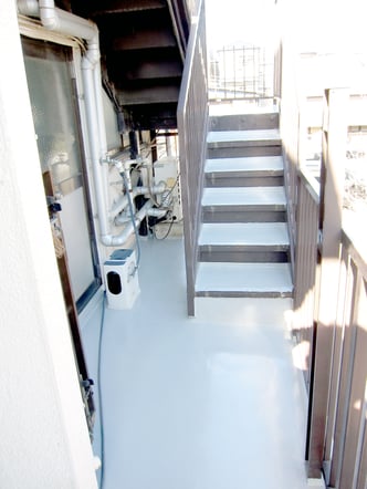 階段の防水もはがれており、機能を果たしていませんでした。
