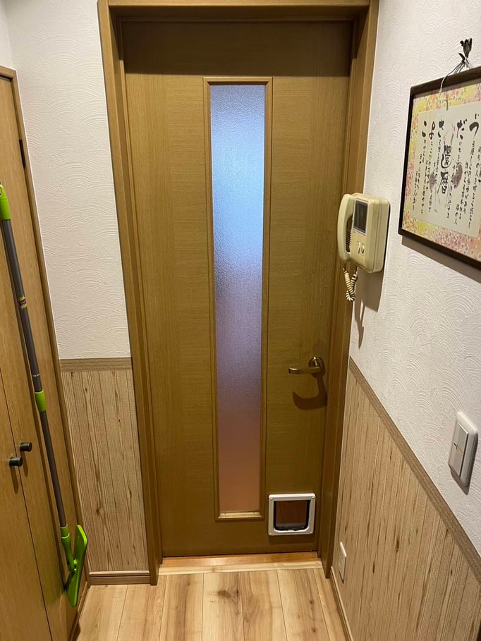 特注でしかない寸法であった為、建具工事として新しく扉をつくりました。今回も「ペットくぐーる」を大きめのサイズで選定しました。