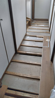 ・既存床板撤去 ・下地根太補強 ・床フローリング新 設 ・残材処分 |