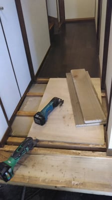 既存の床板を剥がし、下地材が、しっかりしていることを大工の確認が取れたため、フローリングのみの張り替えで済みました。