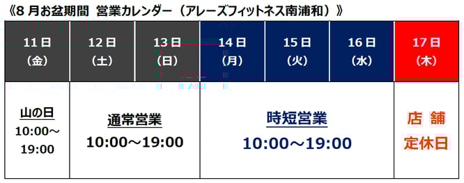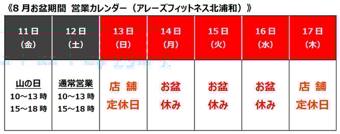 佐藤興産株式会社およびアレーズフィットネス南浦和・アレーズフィットネス北浦和のお盆期間中の営業につきましてご案内申し上げます。皆様にはご迷惑をお掛けすることと存じますが、何卒よろしくお願い申し上げます。