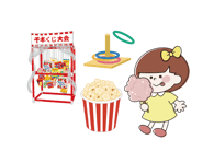 「わなげ」「綿あめ」「ポップコーン」「千本くじ」を実施!!お子様連れのお客様は、ぜひお立ち寄りください!