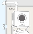 排湿筒はステンレス製(SUS304)のものを使用して、適所に点検口を設けます。工事の際は、設置工事説明書・ガス機器の設置基準に基づいて正しい設置を行います。