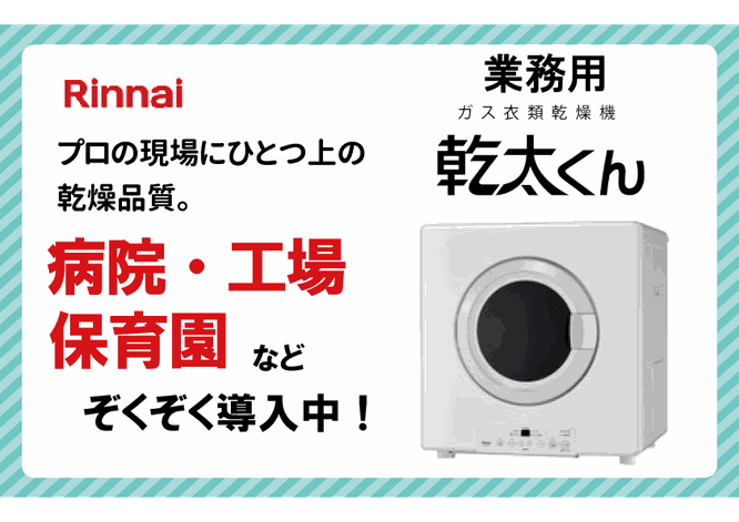 プロフェッショナルな現場に求められる快適さに、「乾太くん」のひとつ上の乾燥品質。『速さ』と『快適さ』でガス衣類乾燥機 業務用「乾太くん」は貢献します。