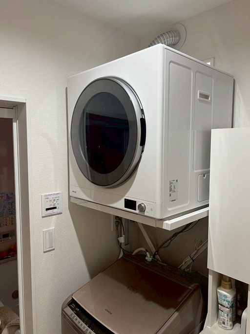 電気式の衣類乾燥機の場合はドラム内を熱して乾かす為、湿気がこもって洗濯物がなかなか乾きません。また、電気式の衣類乾燥機は熱によりシャツやトレーナーについているプリント等も取れてしまう場合があります。ガス衣類乾燥機の場合は、温かい風を当てながら回転し、湿気を排湿管で外に放出しているので、洗濯物の乾きが早くふんわりと仕上がるのでオススメです。