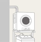 金属排湿筒を本体の排湿口より伸ばし、屋外に面した壁を通して湿気を排出。