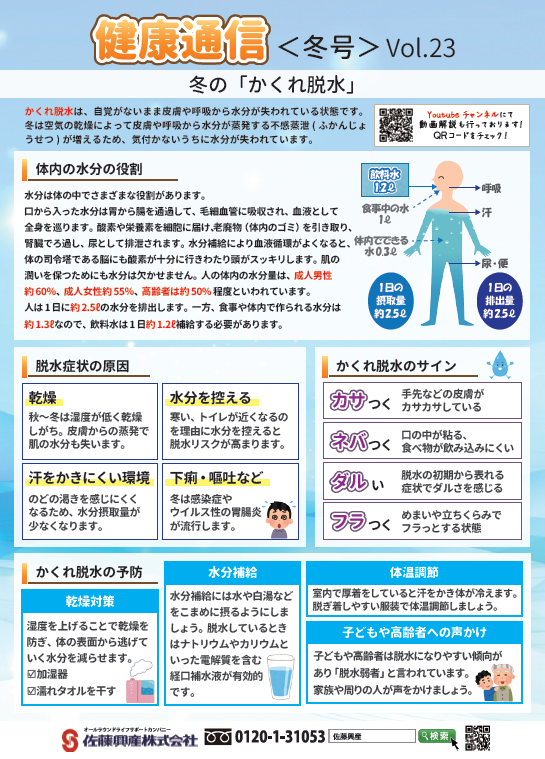「冬のかくれ脱水」佐藤興産の健康通信